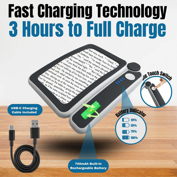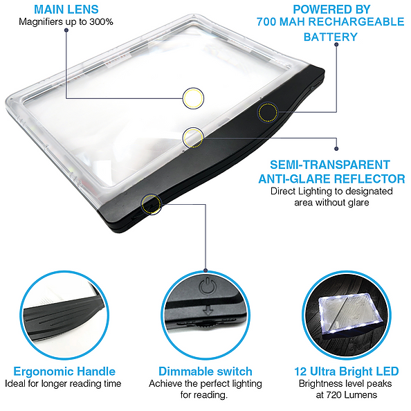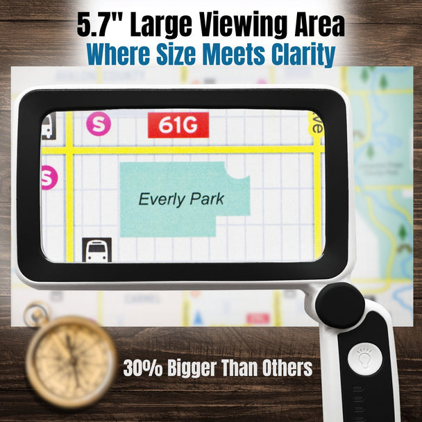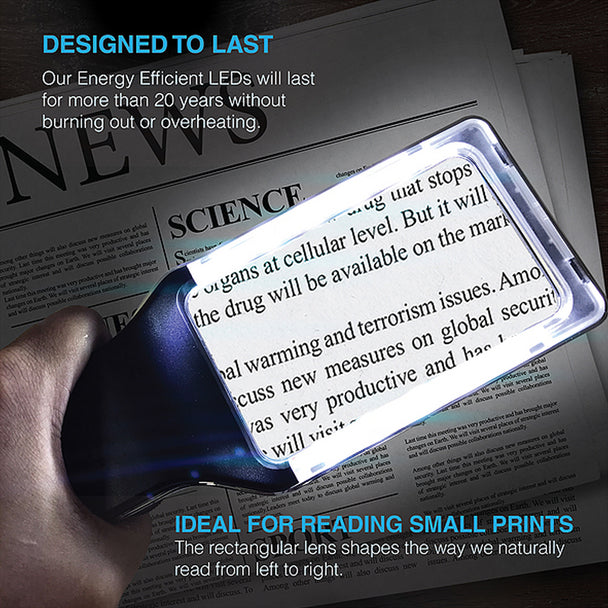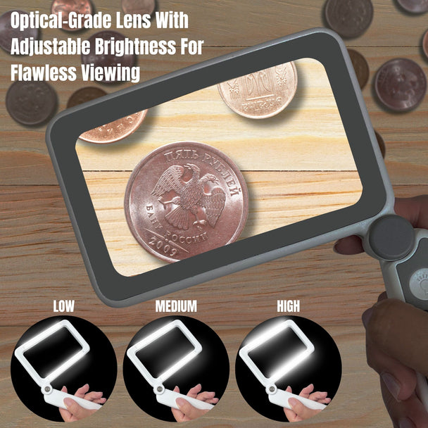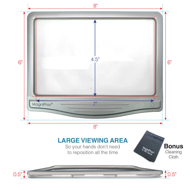 Rechargeable 5X Large Ultra Bright LED Page Magnifier with 3 Color Modes