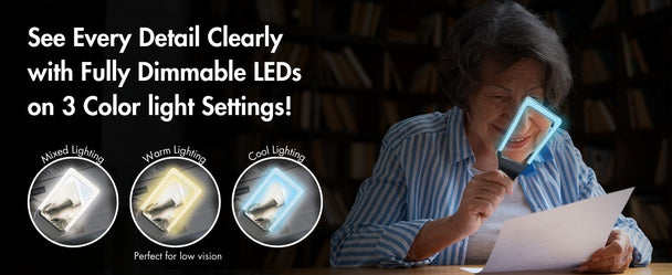 5X LED Page Magnifier with 3 Color Light Modes -24 Fully Dimmable LEDs
