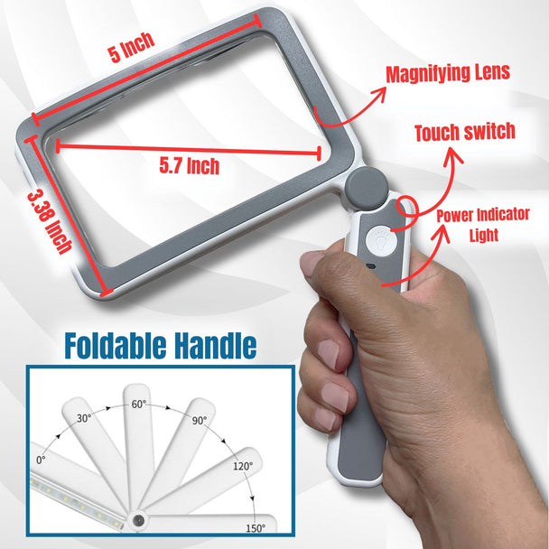 5x LED Page Magnifier with 3 Color Light Modes & Detachable Hands-Free Stand