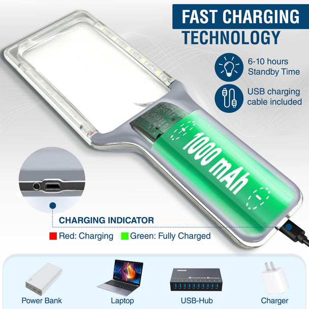 6X Rechargeable LED Magnifying Glass with 3 Color Modes