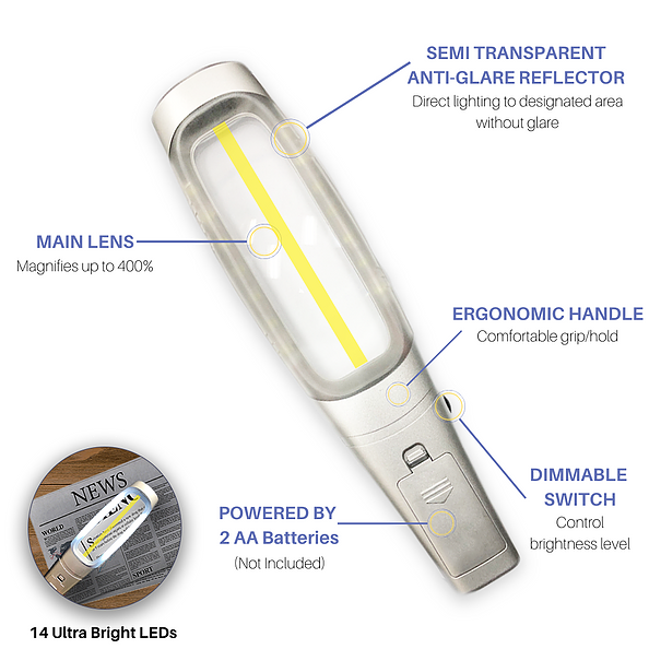 4X Magnifying Bar Magnifier with 14 Dimmable LED Lights