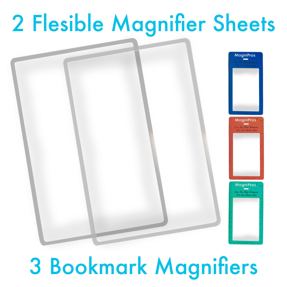 - 3 BONUS BOOKMARK MAGNIFIERS: Each package comes with 2 page size sheets and 3 bonus bookmark magnifiers, due to it's compact size, its east and convenient to bring them with you so you will alwyas have extra set of eyes.