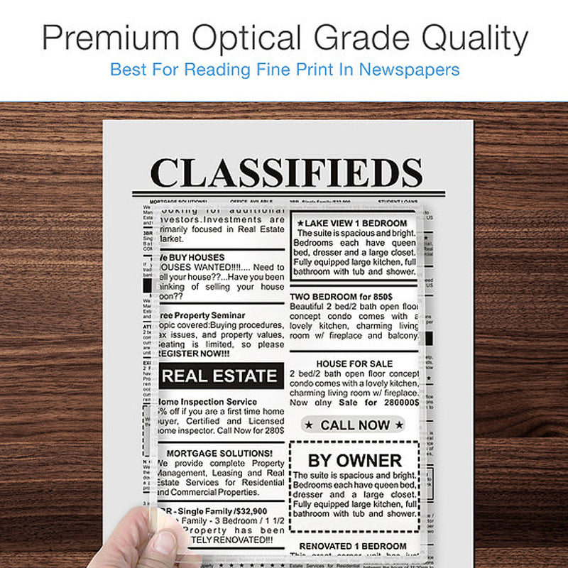 - NON-TOXIC & UNBREAKABLE MATERIAL: The lens is made out of optical grade PVC a superier material than other fresnel lens, which provides crystal clear image quality with minimal distortion, pefect for seniors with aging eyes and low vision individuals.