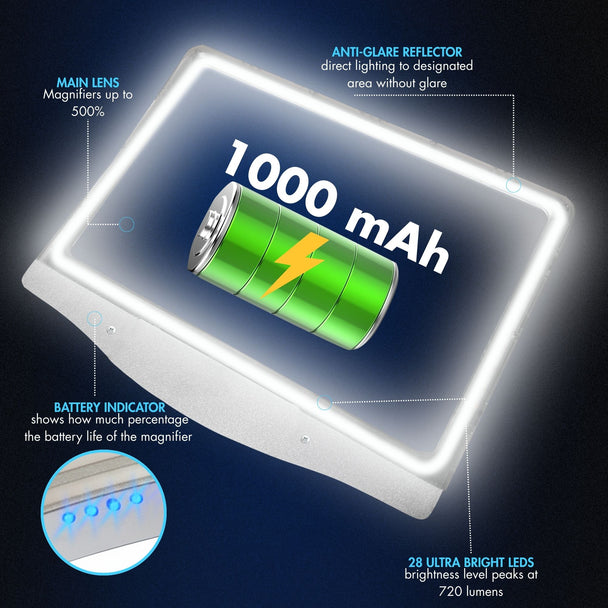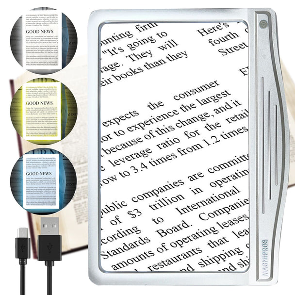 Rechargeable 5X Large Ultra Bright LED Page Magnifier with 3 Color Modes