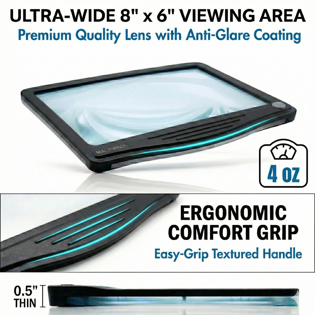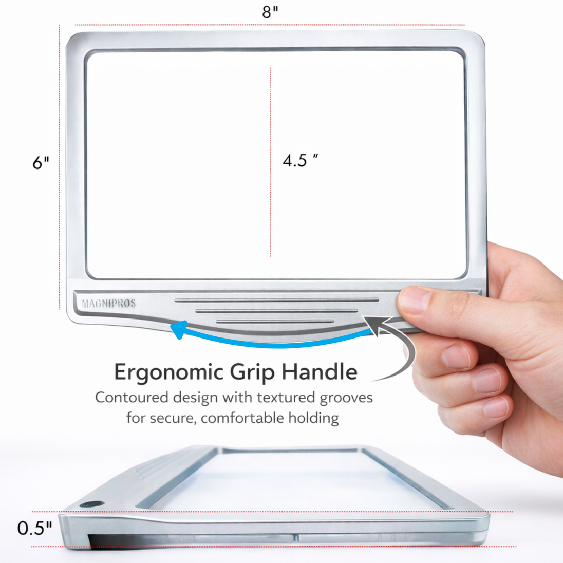 - ★ Ultra-Light with Ergonomic Grip: Weighing just 4 ounces, our magnifier is lightweight for extended use. Its ergonomic grip design suits most hands, ensuring prolonged reading without arm fatigue.