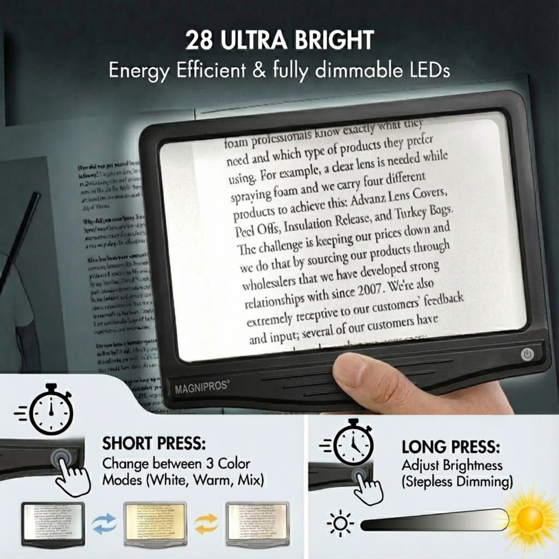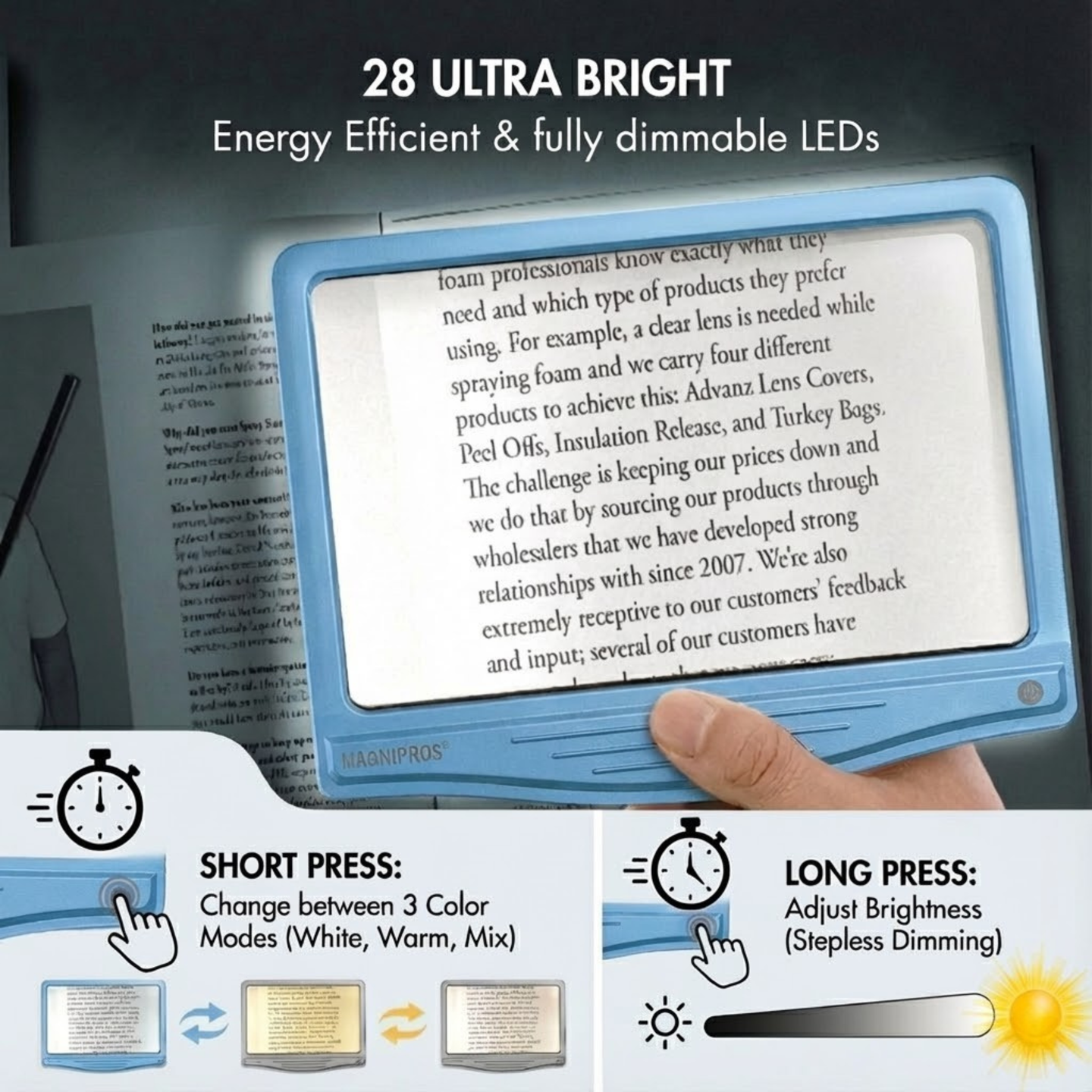 ★ Eye Comfort with Anti-Glare: Designed for seniors and those with low vision, our page magnifier offers enhanced reading through 24 SMD LED lights coupled with an anti-glare lens, ensuring optimal lighting without straining your eyes.