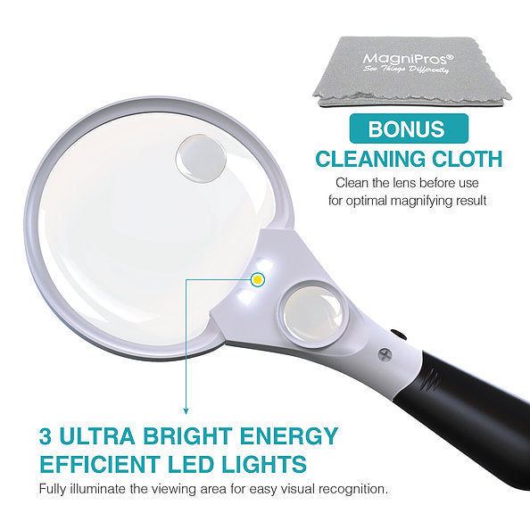 3 Ultra Bright LED Lights with 3X 4.5X 25X Power Magnifying Glass with Light