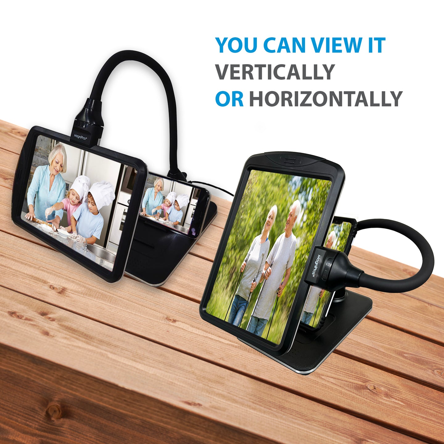 - Flexible Gooseneck & Perfectly Angled Tablet Stands: There are two tablet stands located on the base which you can place tablets at your desired angle to enlarge the screen. Gooseneck is measured 16" in length and can be bend in any direction for your needs.