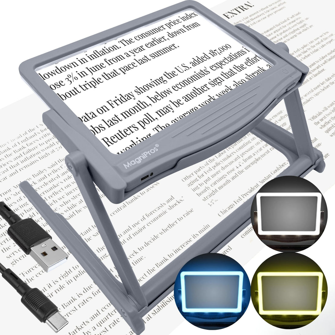 - The Most Advanced 3 Stepless Lighting Modes: Featuring the latest ONE-button/touch and lighting technology on a magnifying glass for reading, turn on/off, switch effortlessly among cool white, warm white, and combo lighting modes to match your reading conditions. This latest technology in magnifying glass illumination ensures optimal comfort and clarity for all your reading needs.