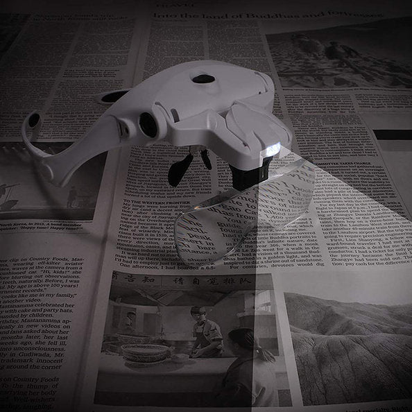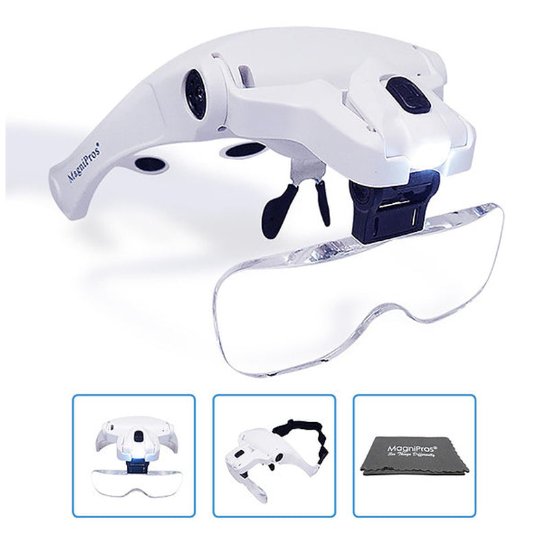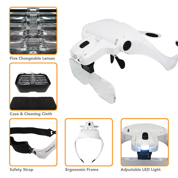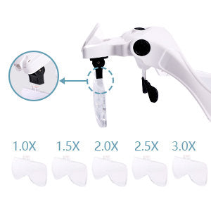 Illuminated Headband Magnifier Visor & 5 Detachable Lenses 1X,1.5X,2X,2.5X,3.5X