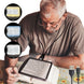 ★Superior Illumination: Equipped with 26 built-in LED lights, this magnifying glass offers adjustable brightness with three different color modes: warm light, white light, and normal LED light. These options provide bright, even lighting that effectively reduces eye fatigue, ensuring comfortable reading even in low-light conditions. The push switch allows you to adjust the brightness to suit different environments.